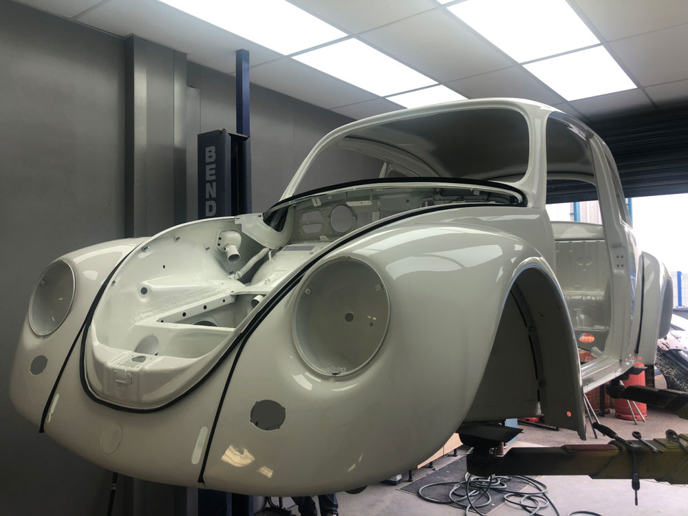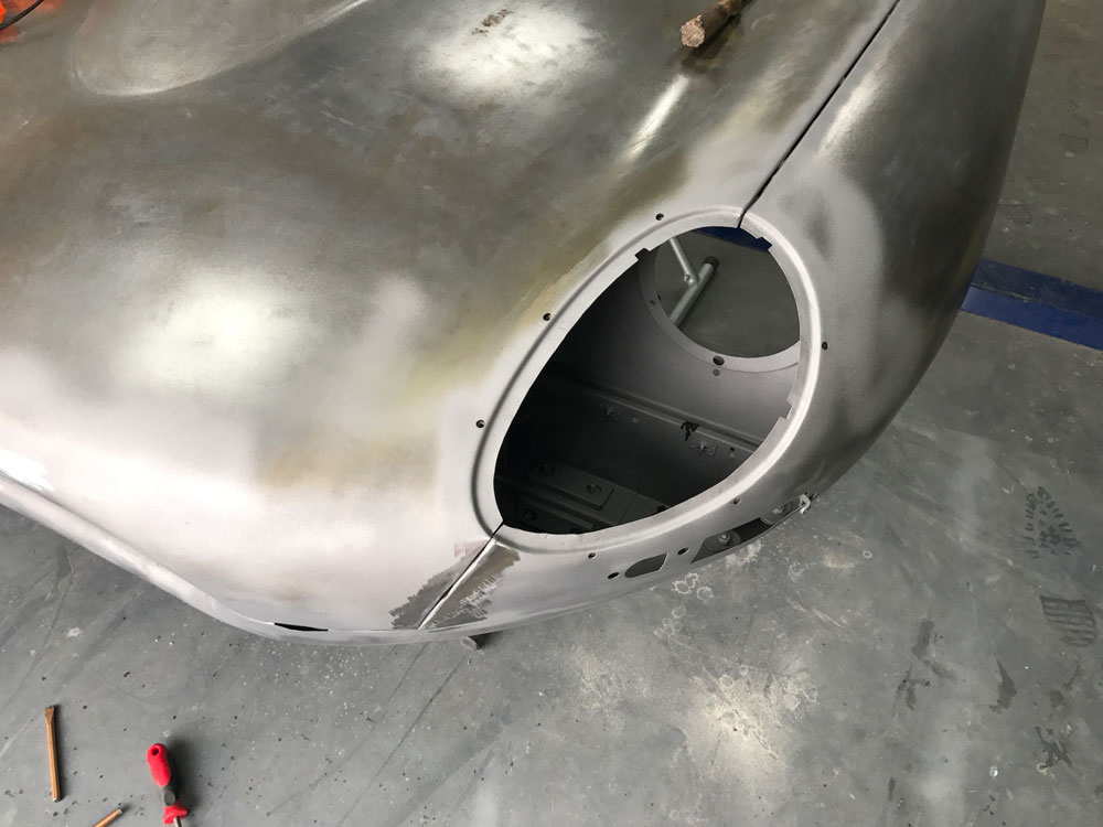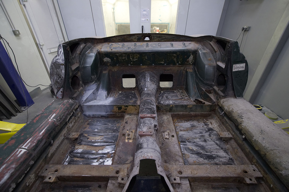 The body (and chassis if the car has one) is sent to our paint stripling and media blasting department which will reveal the real condition of the body. No matter how much experience someone might have it’s impossible to estimate the extent of work that’s required to the shell and chassis until this process has been completed.